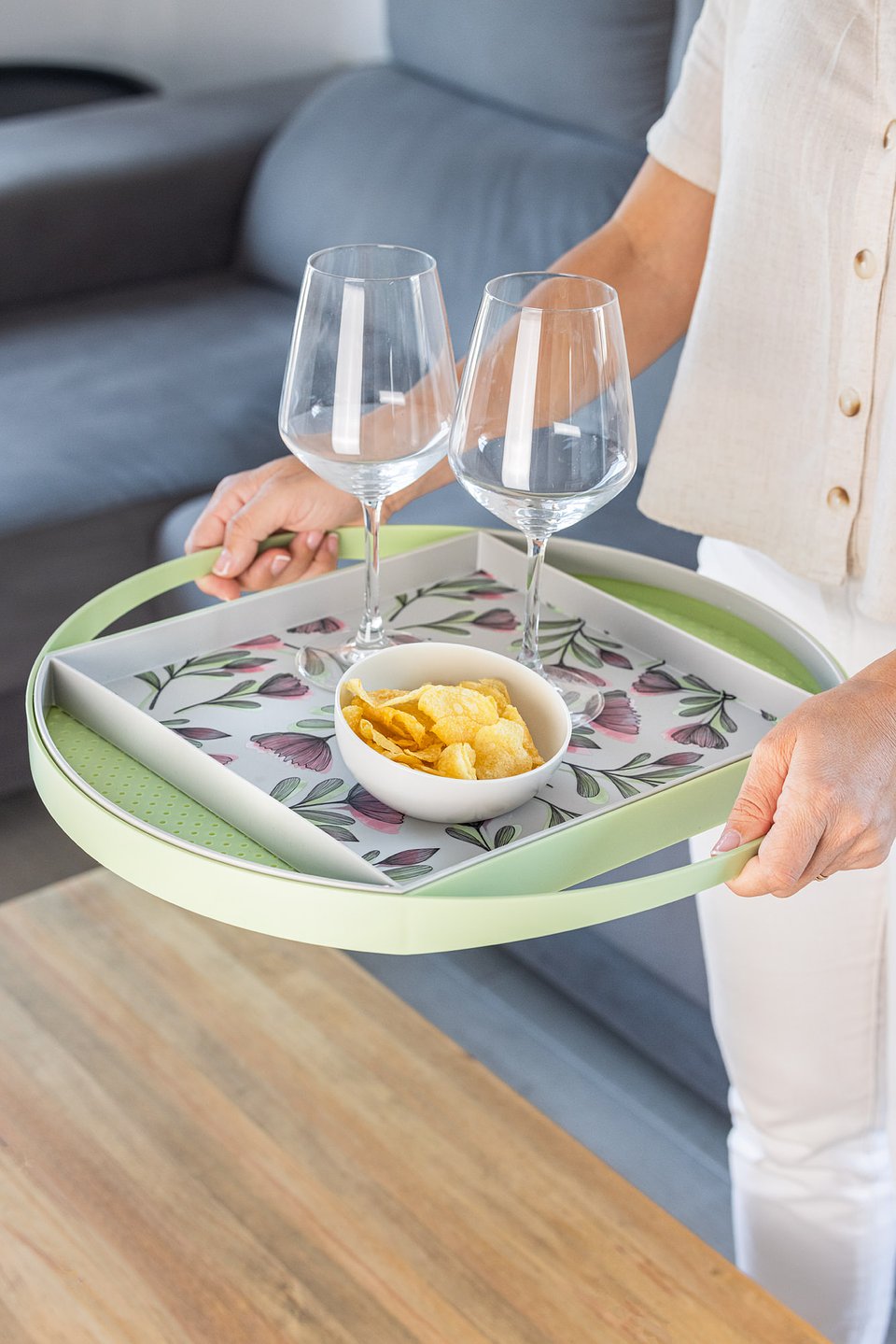 These trays are made of polypropylene, which enables a refined design and a varied color palette, making them more adaptable to different environments. This material, being highly recyclable, reflects Casa Vigar's interest in promoting sustainability.