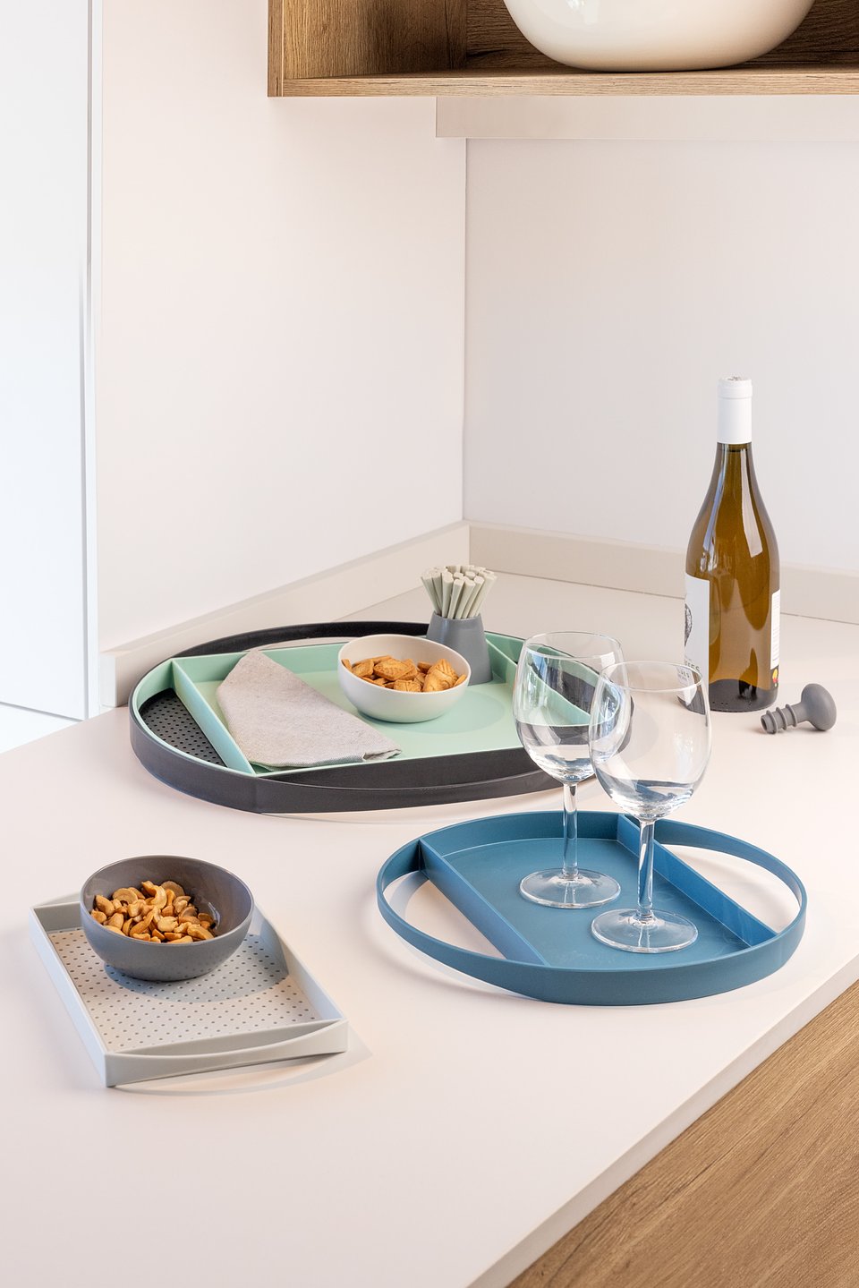 FLAP features a series of four distinctive trays, two of which stand out with a die-cut design, giving them an unmistakable character. Adapted to different sizes, these trays, in addition to being useful in the kitchen, visually enrich any space.